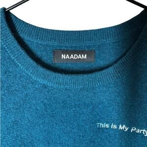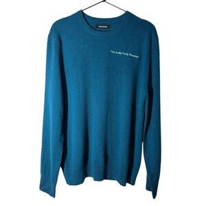 Naadam Men Cashmere Embroidered "This Is My Party Sweater" Teal Medium Cozy Warm