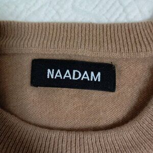 This Naadam sweater offers luxurious comfort with its 100% cashmere material. The camel brown hue adds a touch of sophistication to your collection. It's ideal for layering during transitional seasons. The ribbed cuffs and hem provide a snug fit, making it a practical choice for both casual and formal settings.