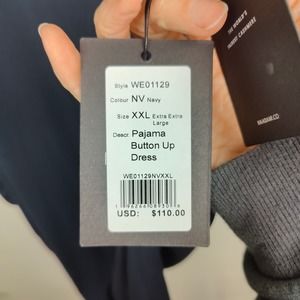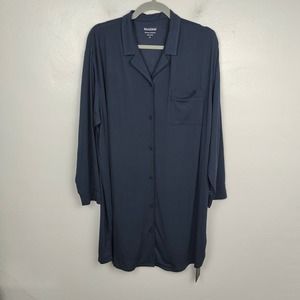 Naadam Pajama Button Up Dress Womens XXL Navy Blue Button Front Sleepwear