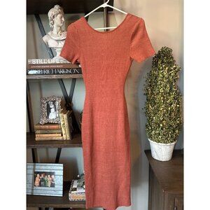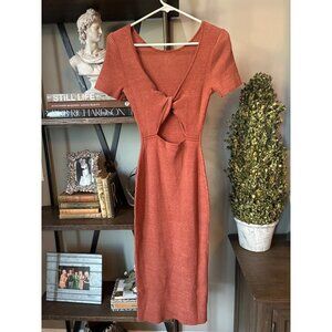 Naadam Ribbed Reversible Twist Knit Midi Dress Brick Womens Size Small