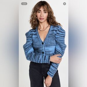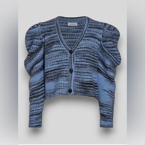 Naadam Space Dye Pleated Shoulder Puff Sleeve Cardigan Blue Alpaca Wool size M