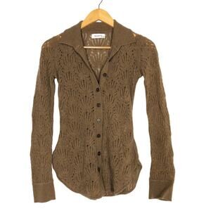 Naadam Sweater Top Pointelle Wool Cashmere Knit Button Down Long Sleeve Brown XS