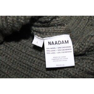 Naadam Sweater Women's Large Wool-Cashmere Blended Sweater Chunky Knit Long Khaki Green army fatigue crew to round neck. Excellent gently worn pre owned condition. Smoke and pet free home. Measures 20" chest, 27" length. Fast professional shipping. F 9/23/2025
