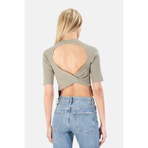 Naadam Twist Back Open Cashmere Sweater Top in Green