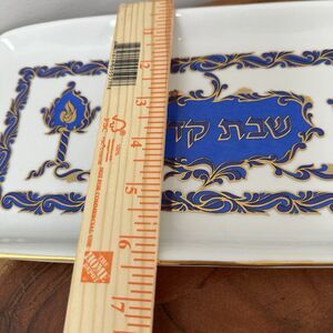 Naaman Fine Porcelain Challah Tray Holy Shabbat Judaic Israeli Hebrew Gold Trim