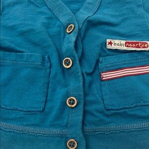 Charming blue blazer for kids. Features button closure and front pockets. Perfect for casual wear.