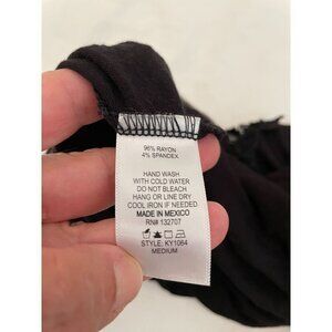 Nabee Black Lace-Trimmed Sleeveless Top With Sheer Back & V-Neck Medium