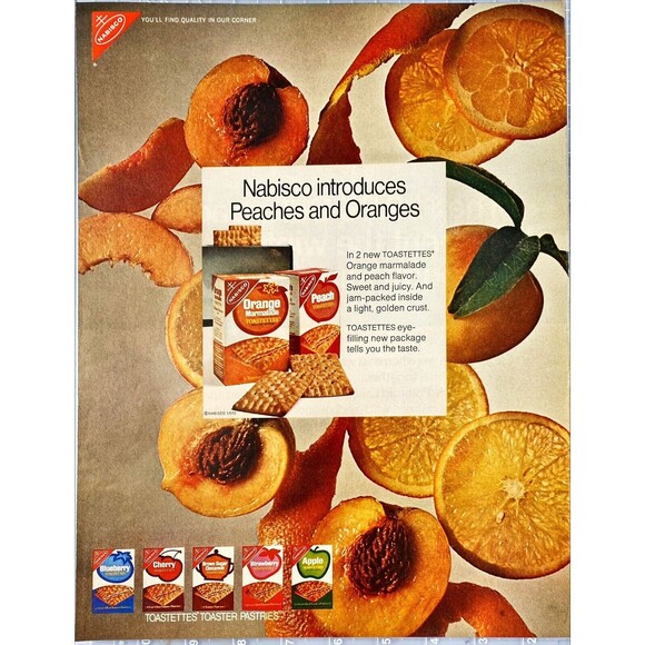 Nabisco Toastettes Toaster Pastry "Introduces Peaches and Oranges" Print Ad 1970