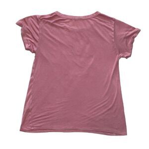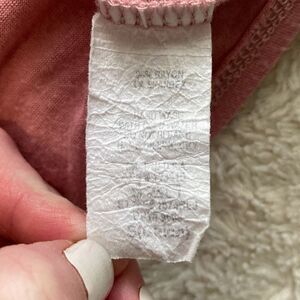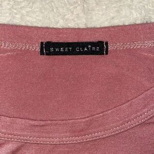 Size small, oversized. See pics for measurements. Lightweight and super soft. Pretty mauve color.