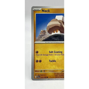 This Nacli card is a must-have for any avid Pokémon TCG collector! With a beautiful illustration by Shin Nagasawa, this card features the Rock Salt Pokémon Nacli with 70 HP. It is a Basic stage Pokémon card with a card number of 121/193 in the Scarlet & Violet - Paldea Evolved set.