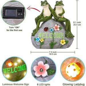 Nacome Solar Garden Outdoor Statues Frog with Succulent and 7 LED Light