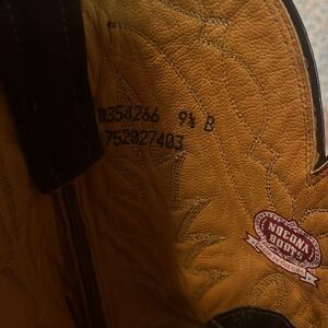 Nacona Boots size 9 1/2 B the color is brown. They are in good condition. Only worn about 10 times actually.