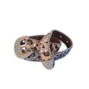 Nacona Leather Girls size 22 Western Rhinestone Bling Leopard Print Cowgirl Belt