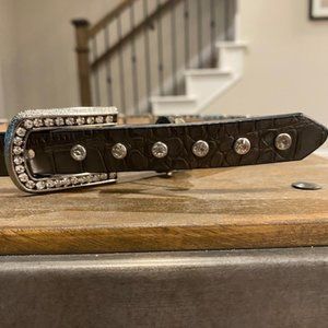 @thebikersbling Hi, the length w/o the buckle is 37.5. I wear a jeans size 25/26 hope this helps!
