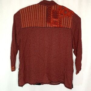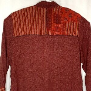 Nada Valley Womens Button Front Top Plus Size 2X Burgundy Black Patchwork.