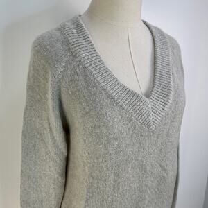 Nadaam Merino Wool & Cashmere Knit V Neck Sweater Gray