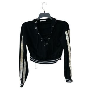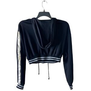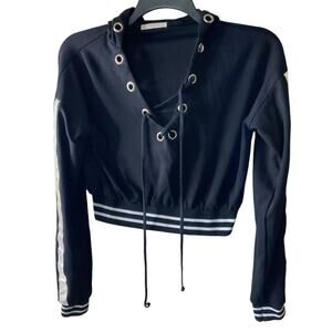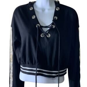 Nadia Cropped Vintage Sweatshirt Women M Drawstring Vneck Hooded Casual Pullover