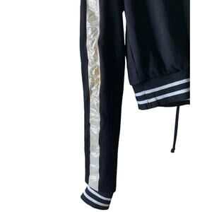 Nadia Cropped Vintage Sweatshirt Womens Medium Long Sleeve Drawstring V-Neck Hooded Pullover