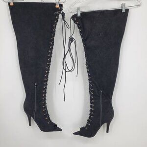 Nadia FTF Faux Suede Lace Up Pointed Toe High Heel Thigh High Boots Size 10