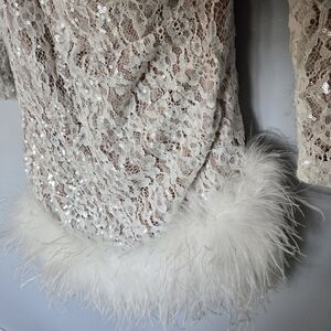 Nadine Merabi Carly Dress size XS Lace White Sequins Long Sleeve Bride