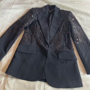 Nadine Merabi- LUCILLE BLACK BLAZER Sequin Jacket Size Small Statement Piece