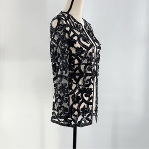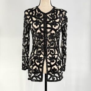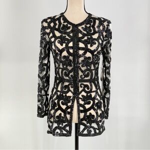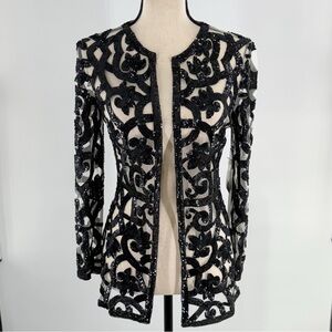 Naeem Khan Black Beaded Sequin Mesh Jacket Sheer Evening Blazer Size 4