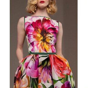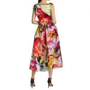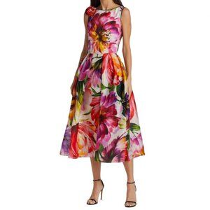 Naeem Khan Pink Floral Printed Midi Dress Size M, 10 US NEW