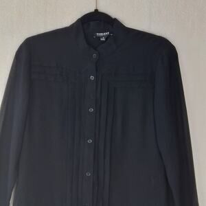 Naeem Khan Womens Blouse S Black Sheer Career Long Sleeve Button Front Collared
