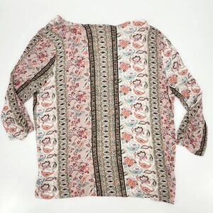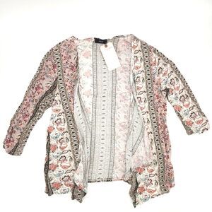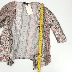 Naïf Cardigan Size 3X Womens Multicolor Pink Paisley Print Gauze Fabric 3/4 Ruched Sleeves Open Front