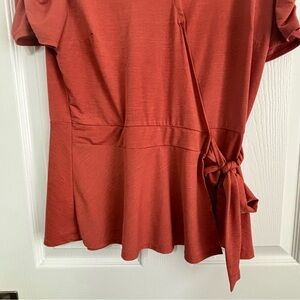 Great condition Dusty red-orange tone Wrap style Peplum waist Size Large Ruffle hem Box C