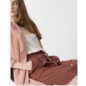 Excellent preloved condition. No flaws. Fits more like a medium. First two photos are the only stock photos that I could find. Color you’re buying is actually dark blue. Feels like SILK! Cupro and Viscose blend.