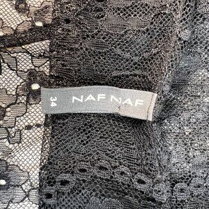 Naf Naf Lace Jumpsuit Surplice Neck Tie Waist Sheer French Style FR 34 US Small
