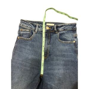 Unleash your inner fashionista with Naf Naf Paris Wide Leg Raw Hem Crop Jeans in a stunning blue. These size 6 jeans are a cotton blend with a stretch material for a comfortable fit.