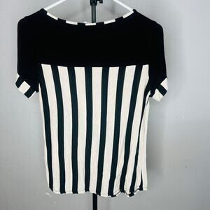 Naïf Petite Small Vertical Stripped Tan And Black Blouse top shirt