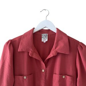 Naïf red rust midi-length dress collared neckline button-front closure 3/4 length sleeves tie-waistband dress SZ LP # 2497