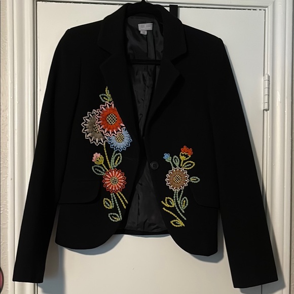 NafNaf Size 38 Floral Embroidered Black Jacket