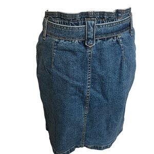 Amazing skirt measurements are shown in the photo has a beautiful tie for the front. These beautiful embellished buttons that are snap in the front pencil skirt in excellent slightly used condition no holes.