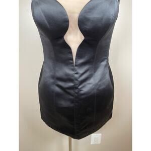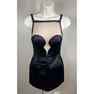 Nafsika Skourti Belle Mesh Cutout Satin Black Mini Dress Size 2
