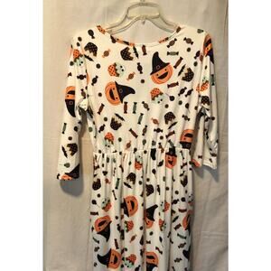Naggoo Halloween Dress Pumpkins Ghosts Candy Bats Stretch NWT New Sz S Fit Flare