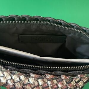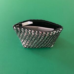 Naghedi Portofino Petit Cosmetic Pouch in Metallic. New and unused, come with dust bag. Handwoven neoprene in metallic gold, perfect for stashing makeup and smaller essentials to organize your larger carryalls.