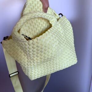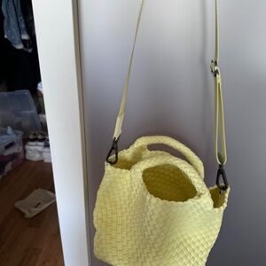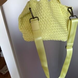 Naghedi Small crossbody neoprene tote in buttercup (yellow) with matching pouch and dust bag and original packaging