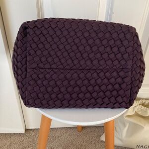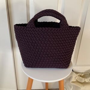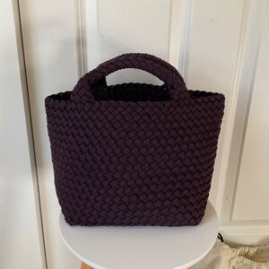 Handwoven neoprene in eggplant. Perfect for carrying all day, the St. Barths Small Tote is the bag you'll reach for every morning.
