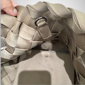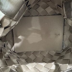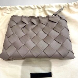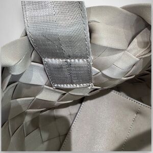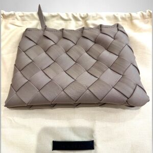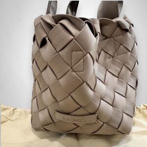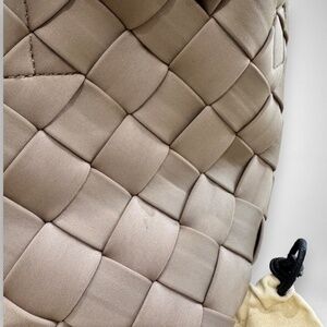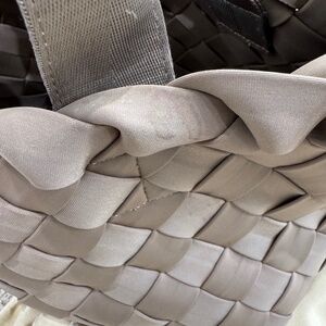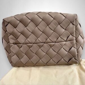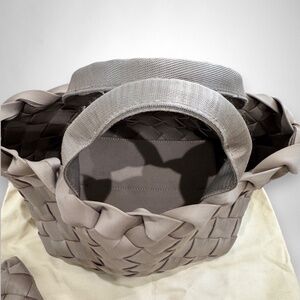 Handwoven neoprene and nylon handles in taupe. Crafted with a wide weave, the Tangier Small Tote is perfect for everyday.