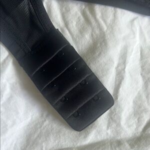 Discover the minimalist elegance of the Nagnata Black Scoop Neck Bra, crafted from a stretchy, athletic material for ultimate comfort. This intimate piece features thin adjustable straps and a classic scoop neckline, making it a versatile addition to your sleepwear collection. Size 3.