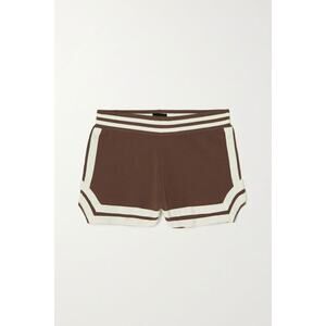 Nagnata Rydell Runner Short in size S/M in very good condition. Note actual item color is WHITE. Other colors pictured are illustrive for fit purposes only. Nagnata's designs are all knitted to shape, which helps to minimize excess waste. These 'Rydell' runner shorts are made from a soft cotton-blend jersey with a comfortable elasticated waistband and striped trims. Wear yours with one of the brand's oversized sweaters and fresh white sneakers. 75% Organic Cotton 25% Nylon