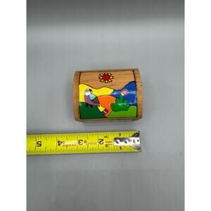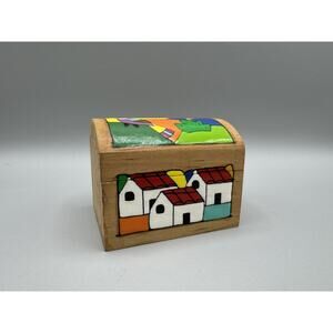 Nahanche Folk Art Wood Box Hand Painted El Salvador Toucan Bird Village VTG