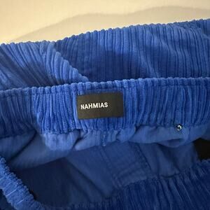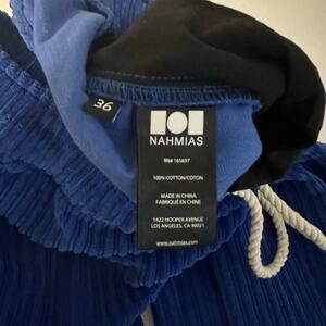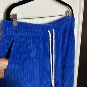 Nahmias Men's Blue Corduroy Relaxed Trousers Size 36 Drawstring Straight Leg