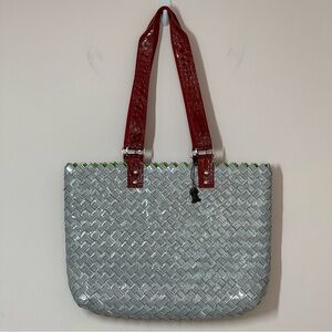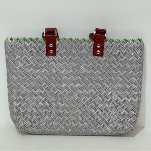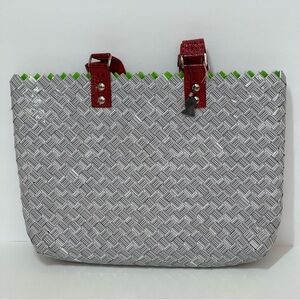 Excellent used condition. Minimal signs of wear. Nahui Ollin Barcode Tote Bag. Color: White/Black/Green Red.