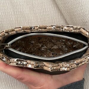 Nahui Ollin, Handmade woven wristlet with leather handle, small