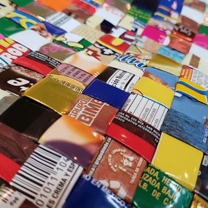 Nahum Ollin Shoulder Bag This is such a great colorful bag with shine from candy wrappers. Definitely goes with lots of outfits. A great conversation starter too.